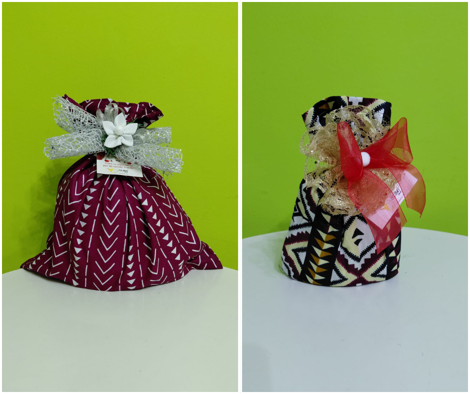 Piccoli, deliziosi e confezionati con cura in sacchettini in tessuto africano: ideali come pensiero natalizio, bomboniera, omaggio aziendale o segnaposto per le feste.